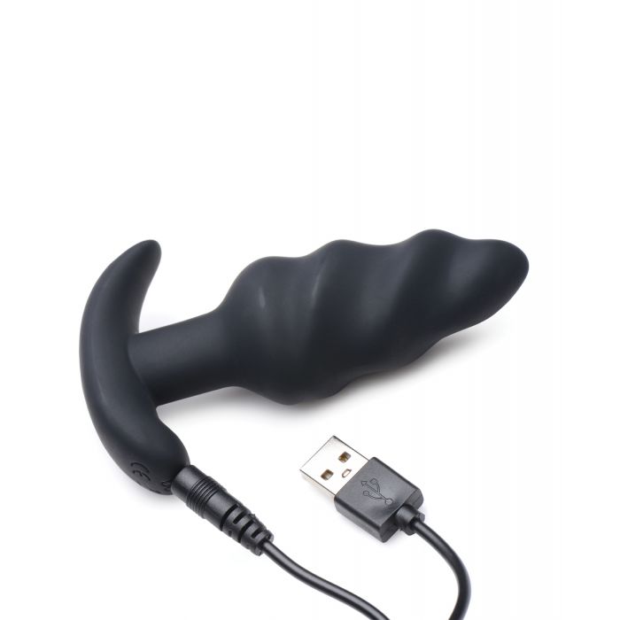 Enjoy the delicious swirling pattern of this Silicone Swirl butt plug! Plush and bumpy to provide a satisfying fill and an addictive mass for your ass to squeeze - perfect for use solo but can also be use with a lover to spice up your one on one time. Made with premium materials and equipped with a powerful motor for intense vibrations when needed! Choose from 3 speeds and 7 patterns of vibrations to send down this twists anal plug! Choose which function fits your or your partners preference and enjoy this plug in tandem with other naughty activities. Flip through all functions with the base controls or with the included wireless controller. Made with premium phthalate free silicone for a luxurious and body safe experience. The IPX5 water resistant build makes this plug easy to clean and safe for use in the shower. Compatible with water based lubricants only. Recharge with the included USB charging cable when the power runs low for unlimited fun! Measurements: Overall length 4.2 inches, insertable length 3.6 inches, widest insertable diameter 1.4 inches, neck diameter 0.7 inches. Materials: Silicone, ABS Plastic.