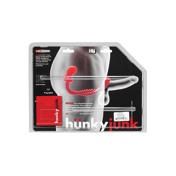RIPPLE connects a rubbery c-ring, (made of our stretchy-strong silicone/tpr blend), to a shaft with rippled taint-rubbing humps, to a plug designed to work your prostate.