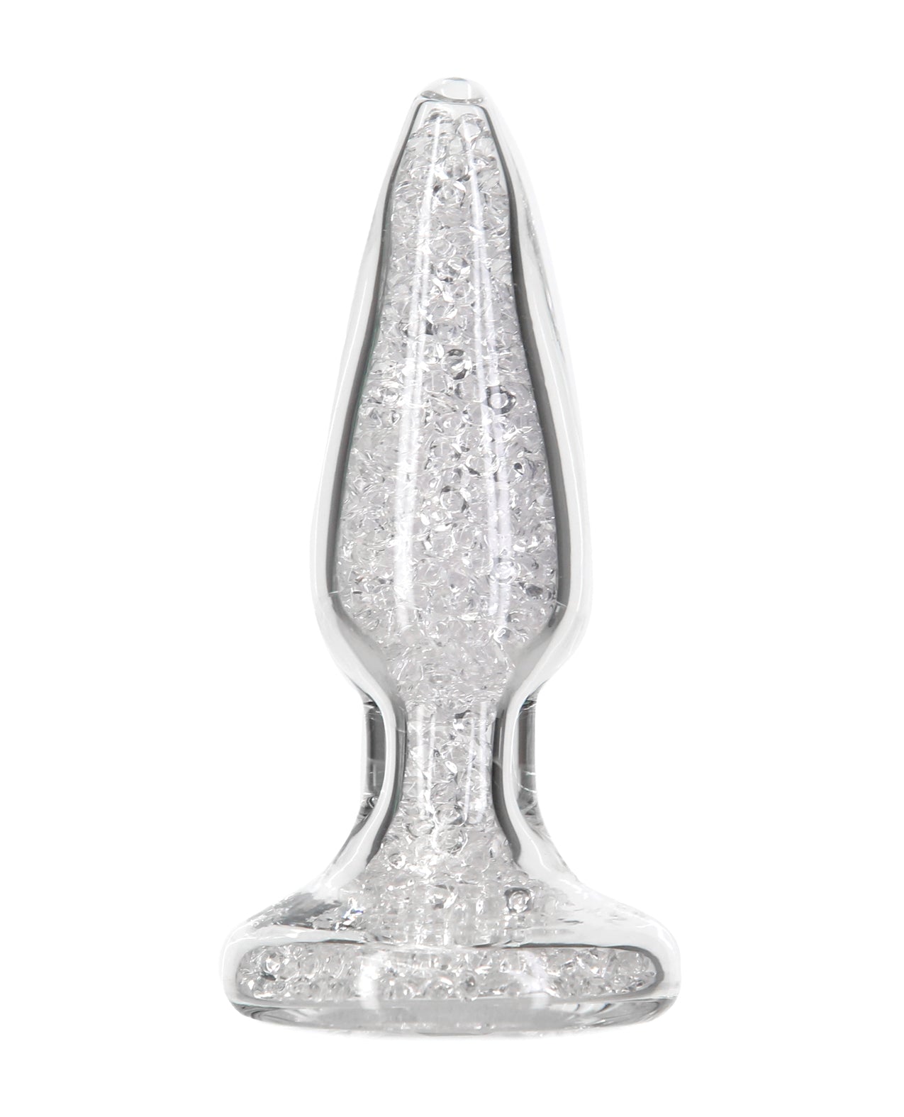 Experience ultimate elegance with Fancy. This shimmering glass anal toy’s interior is filled with sparkling mini glass beads and features an exquisitely sculpted gem base. Its tapered shape and glossy, smooth surface make insertion a breeze and the wide base allows Fancy to sit comfortably in place. Always enjoy with a silicone or water-based lube for the highest levels of comfort and pleasure. Crafted with Borosilicate glass, this toy retains temperature, allowing you to easily experiment with both hot and cold for added sensations. Simply run it under hot or cold water to discover a new realm of pleasure. The sleek, seamless surface is easy to clean and ideal for those with sensitive skin. Always wash well with soap and water or a toy cleaner before and after every use. Get Fancy with Pillow Talk®!