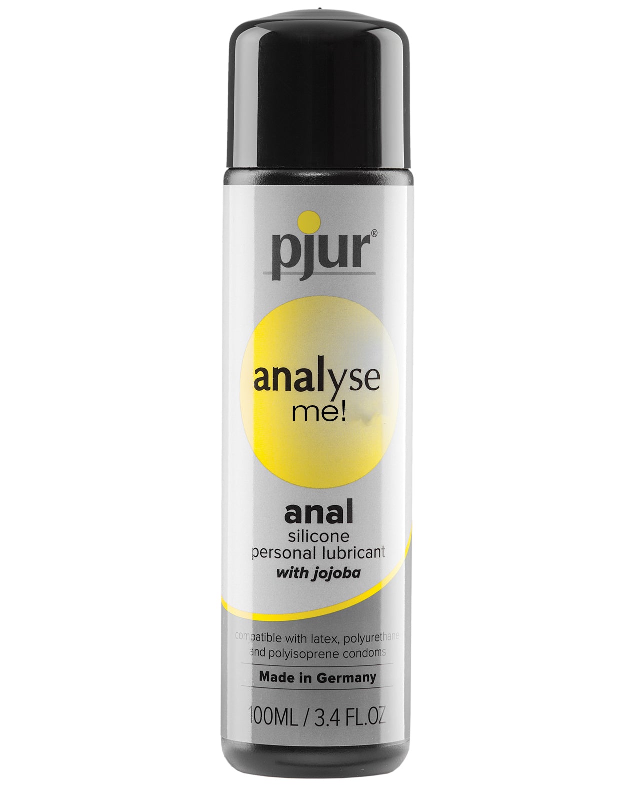 pjur® analyse me! anal silicone personal lubricant contains natural jojoba: jojoba has nourishing, moisturizing and soothing properties. The formula ensures the extra long lasting lubricating effect. May also be used for massage, moisturizing and skin conditioning. Only a few drops are needed. Never gets sticky or dries out. Leaves your skin soft and smooth. Non-irritating and does not block skin pores. Made without fats, fragrances, parabens, preservatives or water.