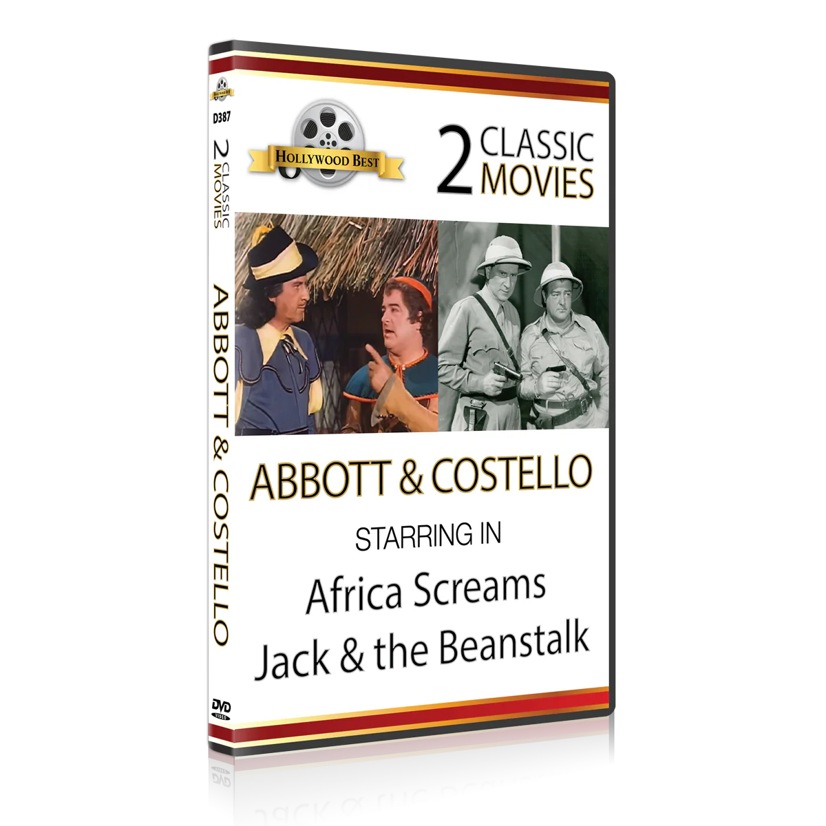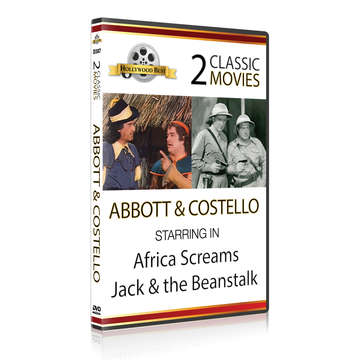 \nAfrica Screams - 74 minutes - Black & White - 1949 \nDiana Emerson is looking for a copy of the Dark Safari. Buzz Johnson (Bud Abbott) overhears Diana say she'll pay $2,500 for a map inside the book. Buzz decides to pass his friend off Stanley Livington (Lou Costello) as a great explorer. With claims they can reproduce the map, the two men agree to accompany her on the expedition. They discover a trail of diamonds leading to a cannibal village where the cannibals intend to roast and eat them. When the story ends you'll be laughing your head off! It is truly Abbott and Costello at their funniest!Jack & The Beanstalk - 78 minutes - Color - 1952 \nAbbott and Costello add their own unique brand of comedy to this classic fairytale. Whilst Jack (Lou Costello) is babysitting and trying to read the story of Jack and the Beanstalk he falls asleep and in his dream he is Jack in a magical land. Duped by Mr. Dinklepuss (Bud Abbott) into exchanging a cow for a handful if magic beans. Jack plants the beans and the following morning an enormous beanstalk has grown reaching up through the clouds to where the dreadful Giant lives. Jack and Mr. Dinklepuss climb the beanstalk and go in search of the Giant.