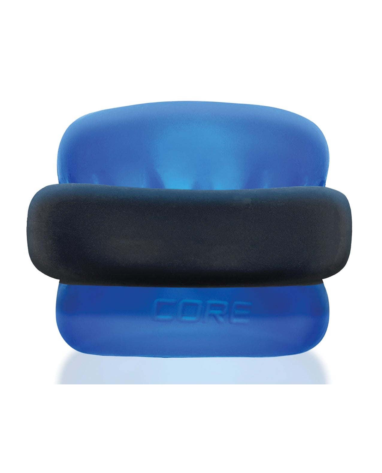 You also get the rib-gripping rubbery AXIS power-ring--its got channel ribs inside that morph with the outside ribs on the CORE stretcher. CORE ballstretcher is an amazing ballstretcher on its own—on your nuts the inner smooth tunnel wraps your sack with a medium firm squeeze, but add AXIS power ring on top of the cogged CORE and get the most MAX BAG SQUEEZING.